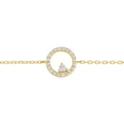 Bracelet Plaqué Or Jaune Oxyde Central Cercle Pave Oxydes De Zirconium 18cm