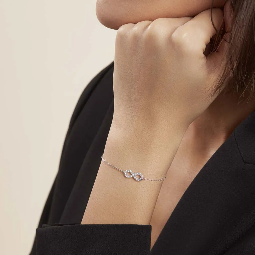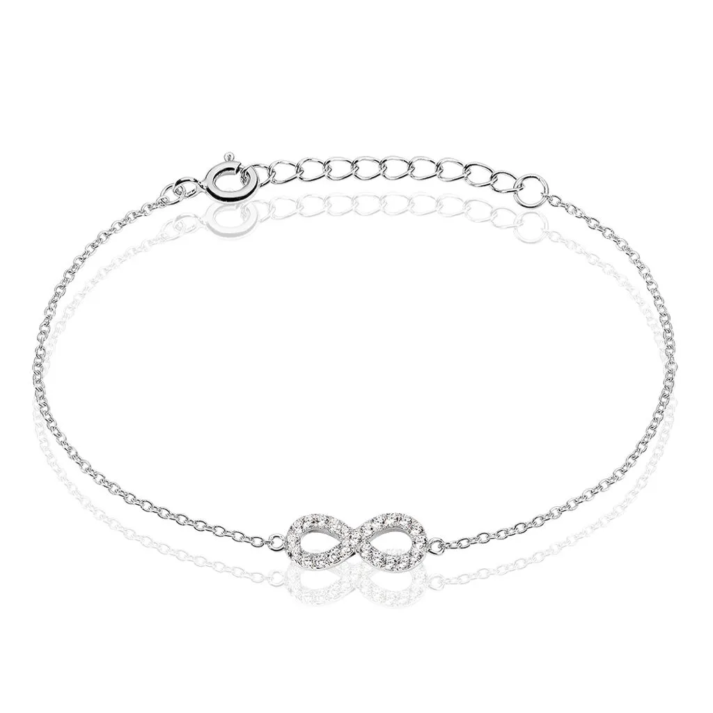 Bracelet Argent Blanc 925/1000 Forme Infini Pavage Oxydes De Zirconium 18.5cm