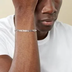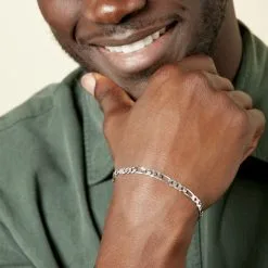 Bracelet Argent Blanc 925/1000 Maille Alternee 1/3 Largeur 5.2mm 19cm