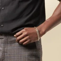 Bracelet Or Bicolore 375/1000 Maille Gourmette 9mm 24cm