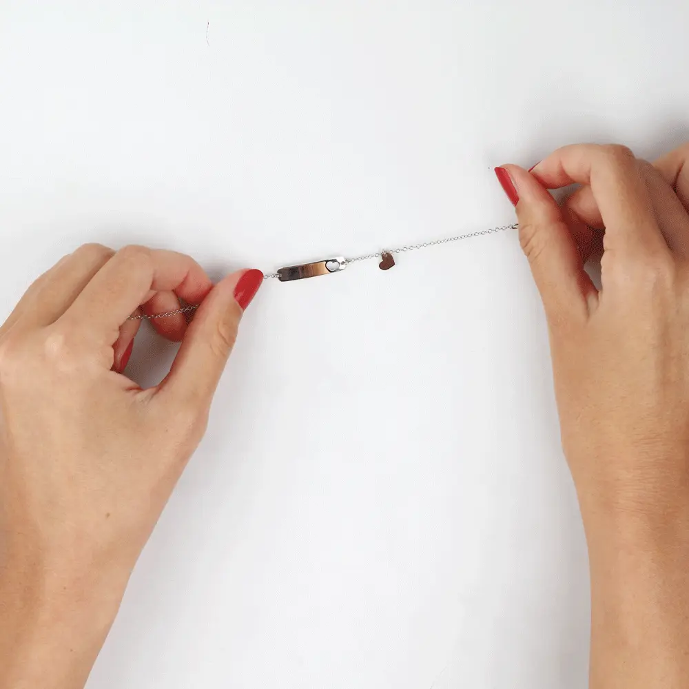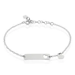 Bracelet Identite Argent Blanc 925/1000 Plaque Rectangulaire Cœur Ajoure Et Pampille Coeur Maille Forcat 19cm