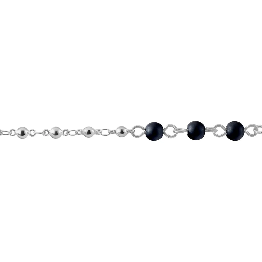 Bracelet Acier Boules Noires Pampilles Croix Et Vierge Marie 21cm