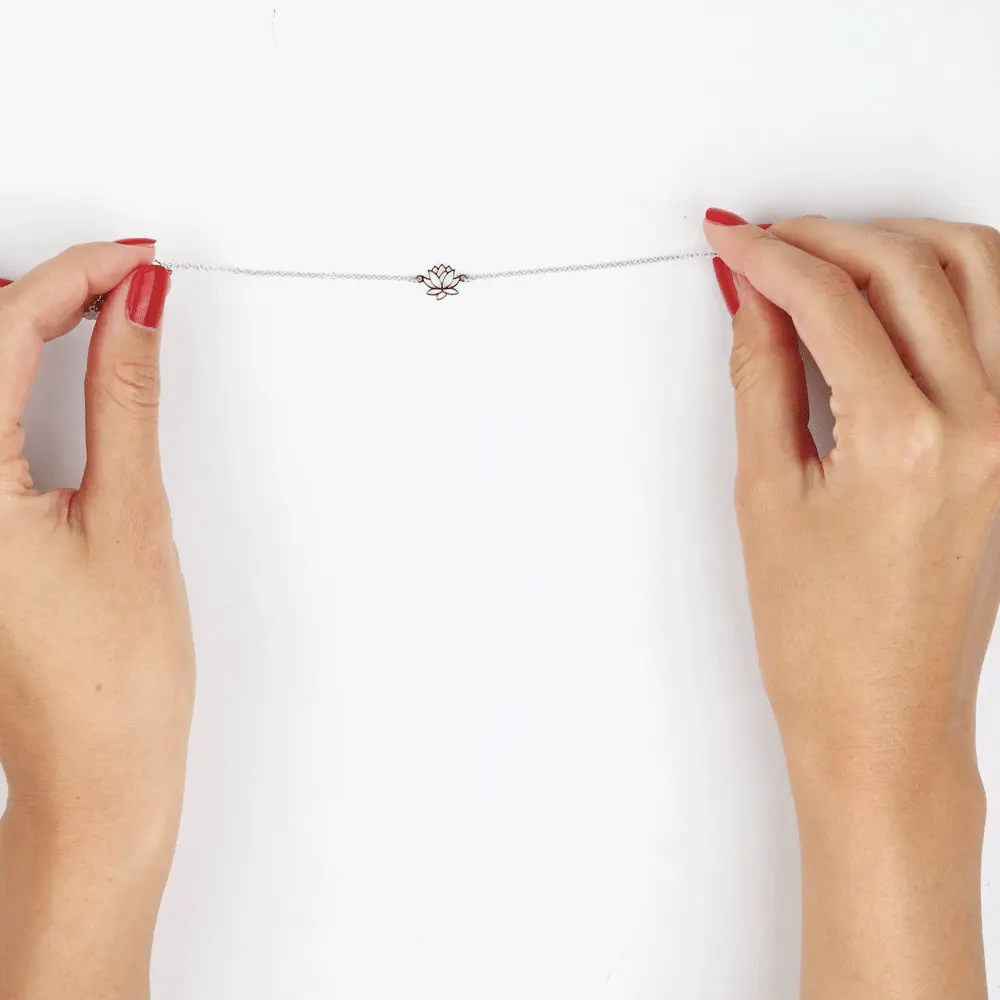 Ce bracelet en argent 925/1000ème sublime vos tenues avec discrétion et élégance. C’est un modèle intemporel qui va avec tout. Il est composé d’un motif origami fleur de lotus qui apporte une touche d’originalité à sa chaîne délicate en maille forçat. Ce joli bracelet de 18 cm de longueur dispose d’un fermoir ajustable.