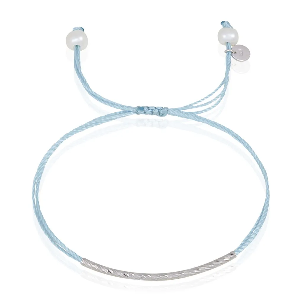 Bracelet Argent 925/1000 Tube Central Strié Sur Cordon Bleu