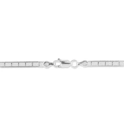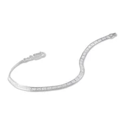 Bracelet Argent Blanc 925/1000 Maille Heringbone Motifs Carres Diamantes Largeur 3.2mm 18cm