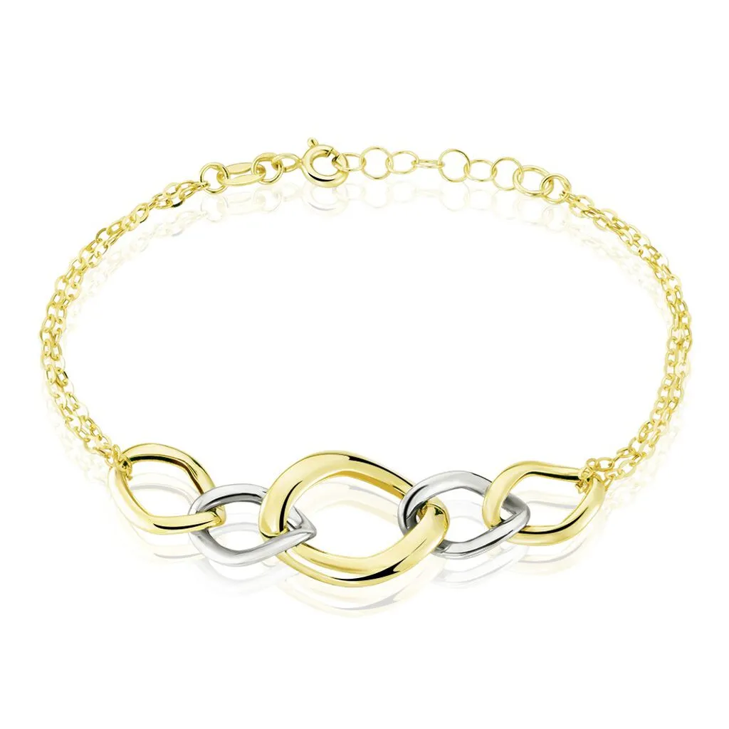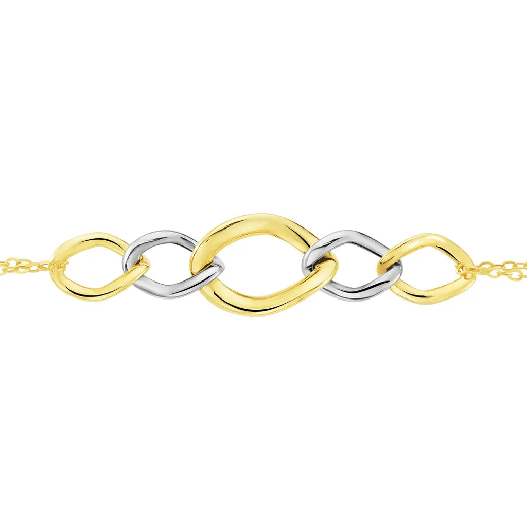 Bracelet Or Bicolore 375/1000 Maillons Maille Forcat 19cm