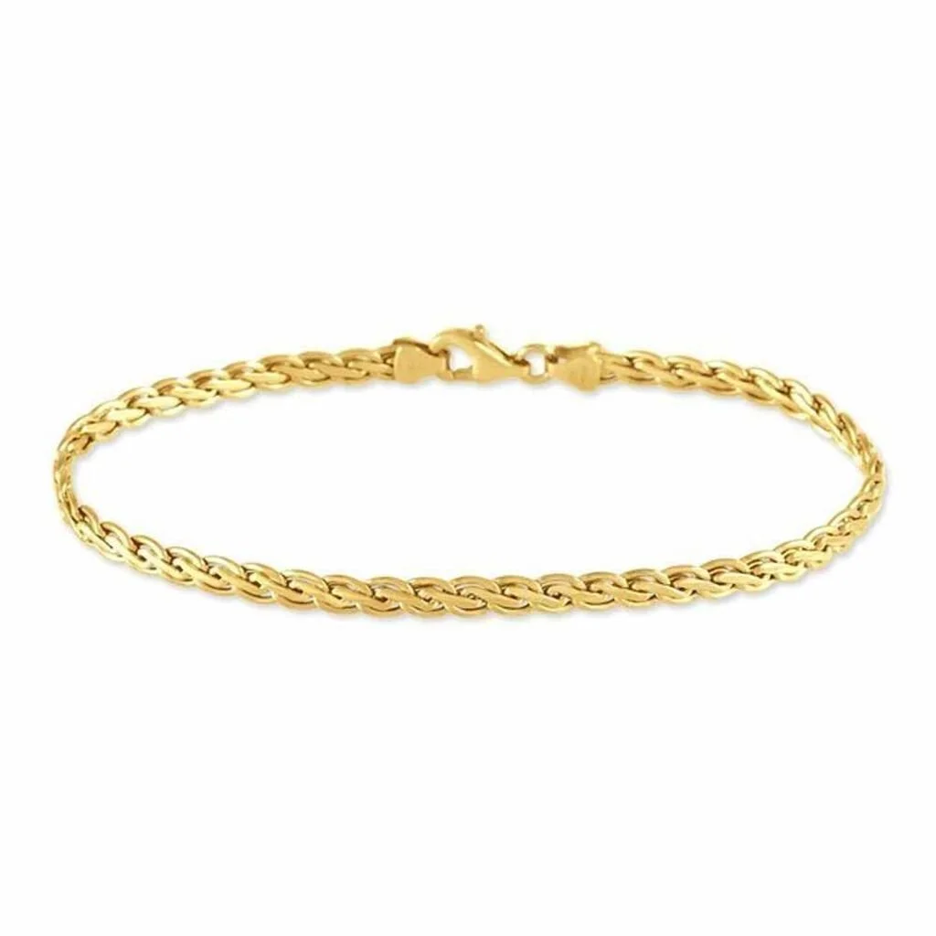 Bracelet Or Jaune 375/1000 Maille Palmier Ecrase Largeur 3.5mm 18cm