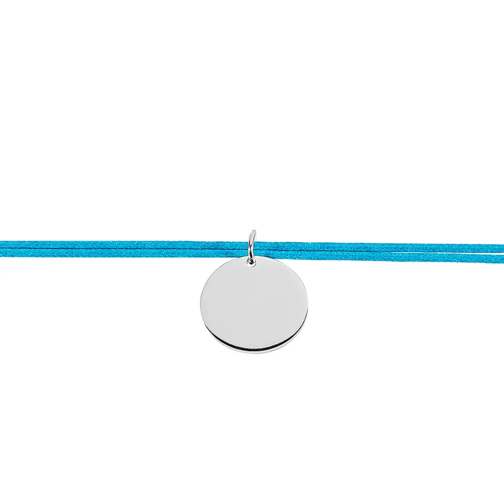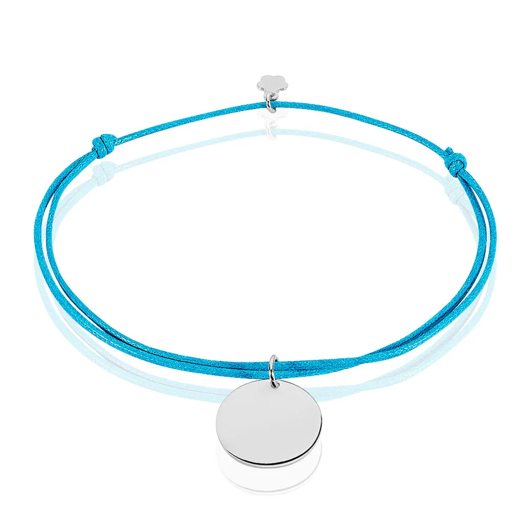 Bracelet Argent 925/1000 Pastille Cordon Ajustable Bleu Canard
