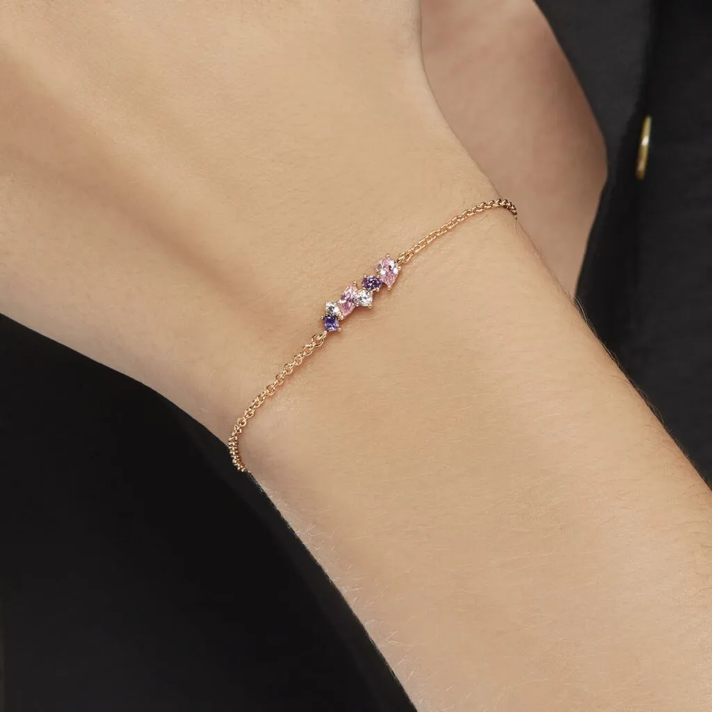 Bracelet Plaqué Or Barrette Oxydes De Zirconium Colorés Maille Forcat 18cm