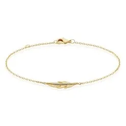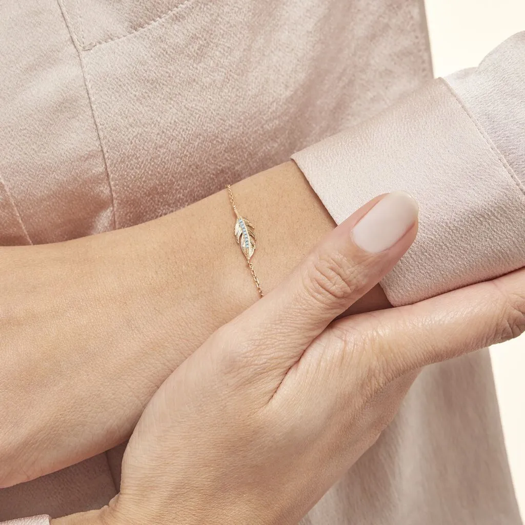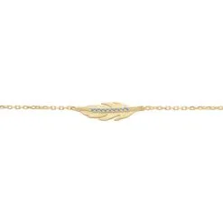 Bracelet Plaqué Or Jaune Plume Pavage Pierres Artificielles Bleues Maille Forcat 16+2cm