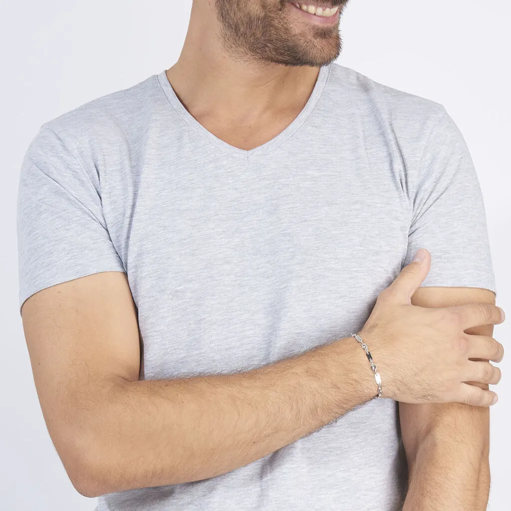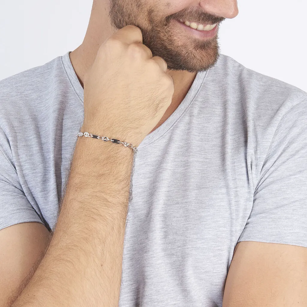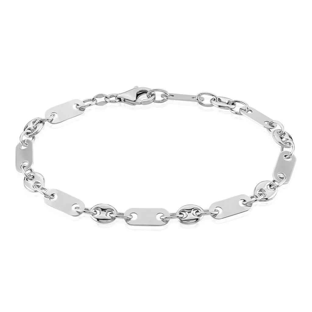 Bracelet Argent Blanc 925/1000 Maille Alterne Plaquette Grain De Cafe Epaisseur 6mm 21cm