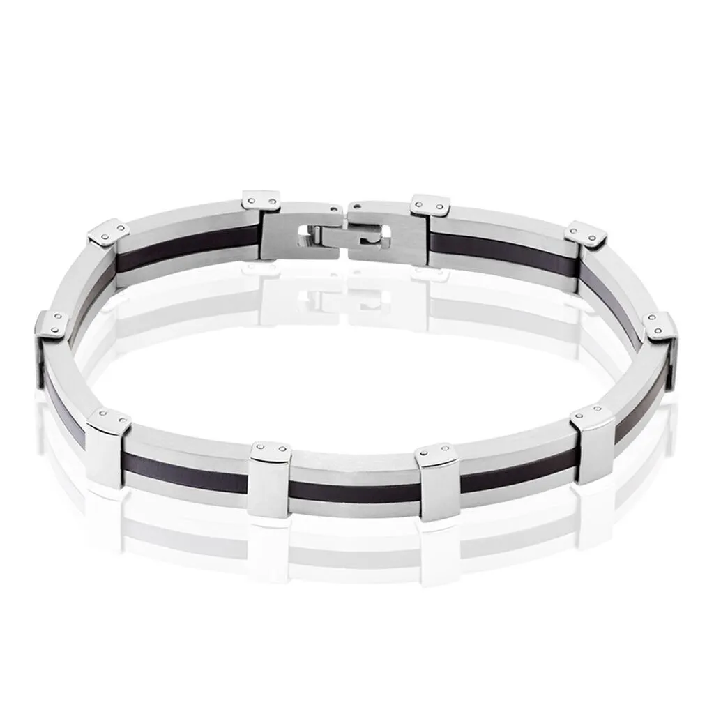 Bracelet Acier Blanc Resine Noire 21cm