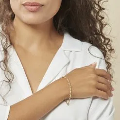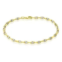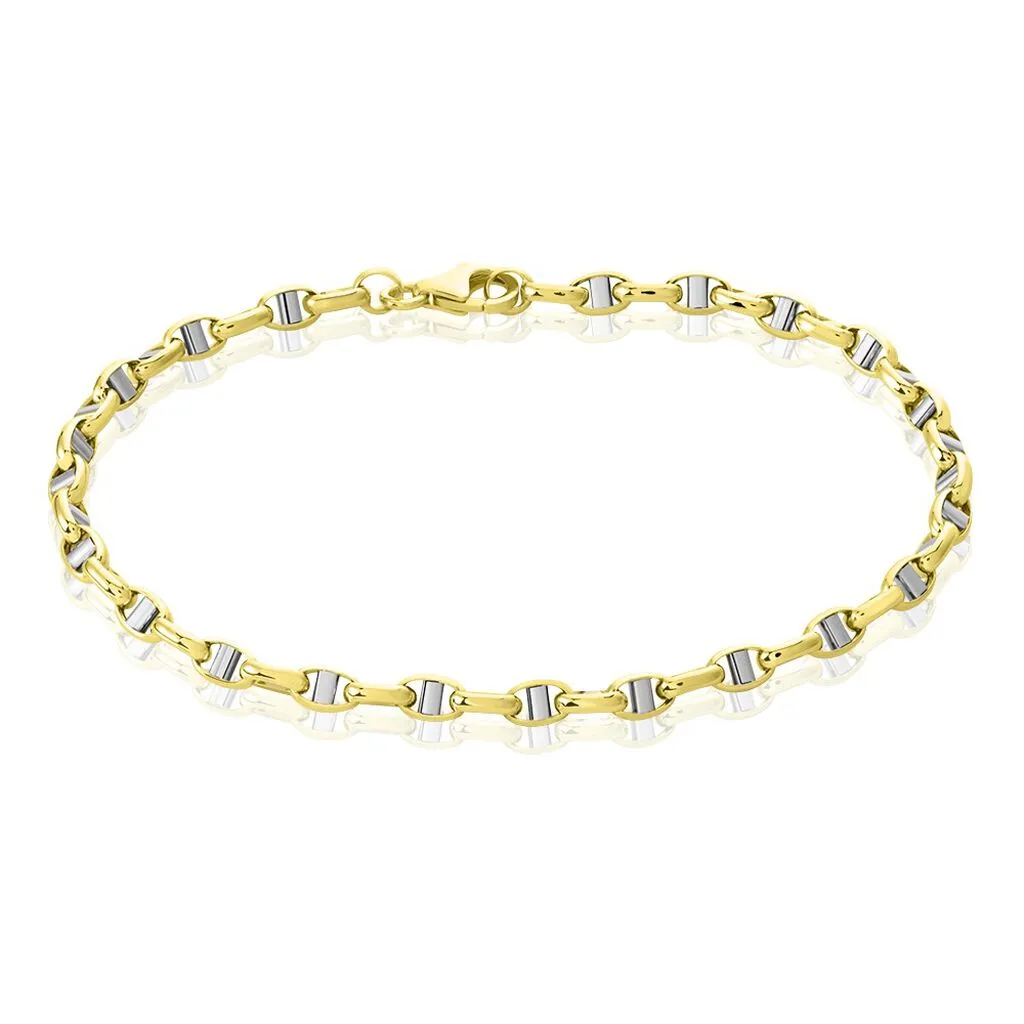 Bracelet Or Bicolore 375/1000 Maille Marine Ronde 3.5mm 21cm