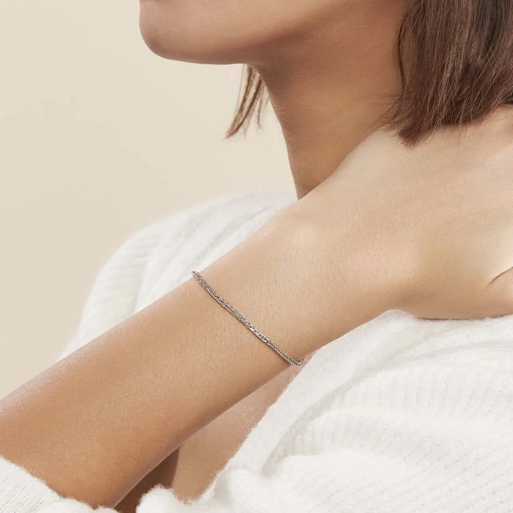 Bracelet Argent Blanc 925/1000 Maille Palmier Carree 18cm