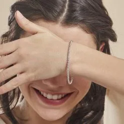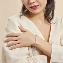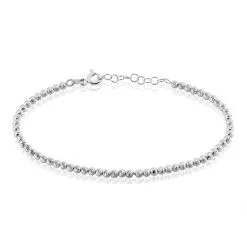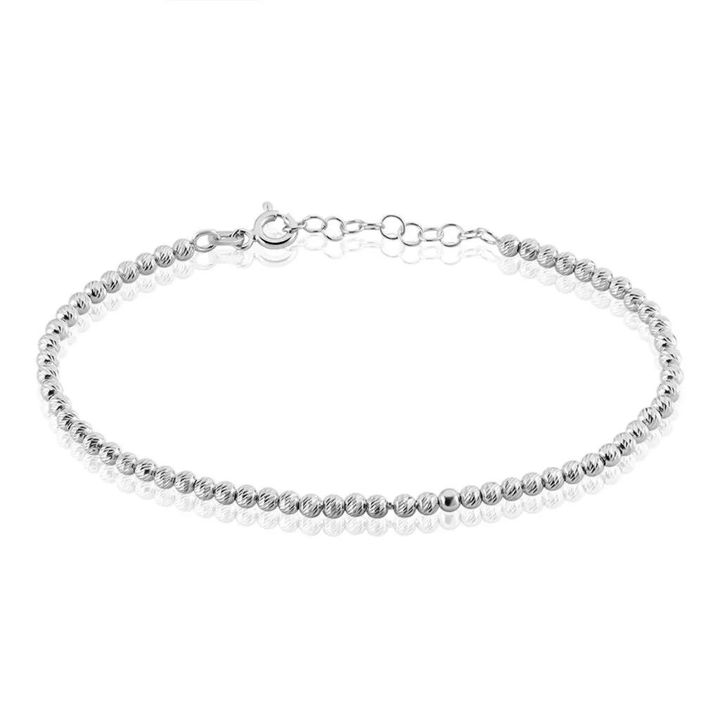Bracelet Argent Blanc 925/1000 Maille Boules Effet Diamante 21cm