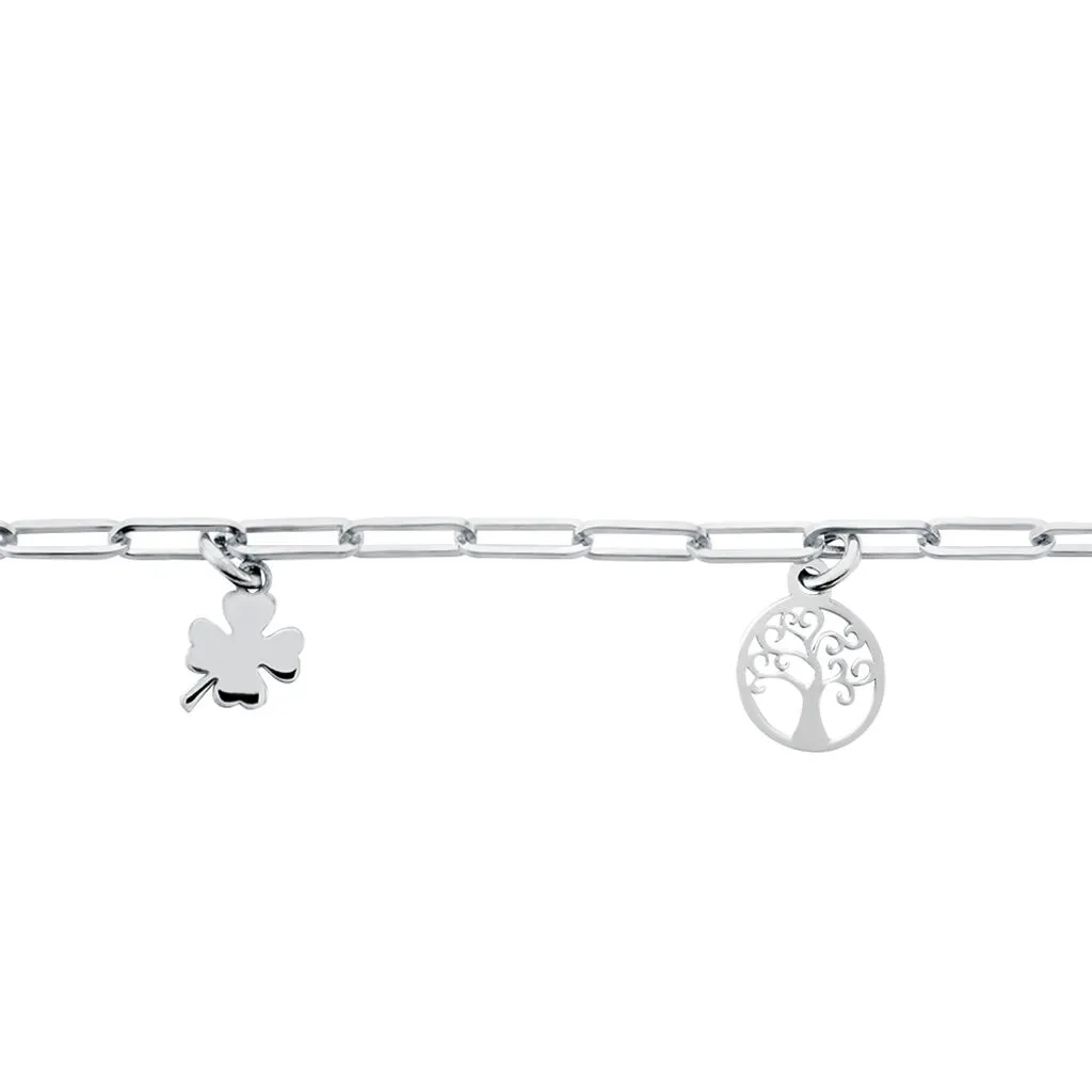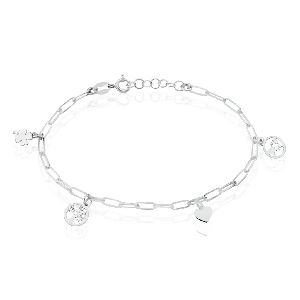 Bracelet Argent Blanc 925/1000 Pampilles Trefle Arbre De Vie Cœur Carte Maille Cheval 18cm