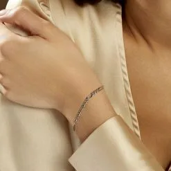 Bracelet Argent Blanc 925/1000 Maille Alternee 1/3 Epaisseur 3.8mm 19cm