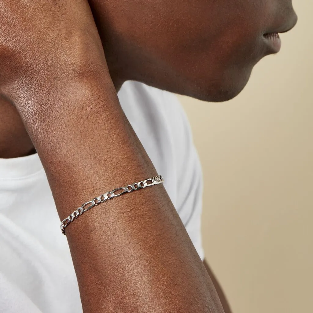 Bracelet Argent Blanc 925/1000 Maille Alternee Largeur 1/3 5.1mm 21cm