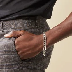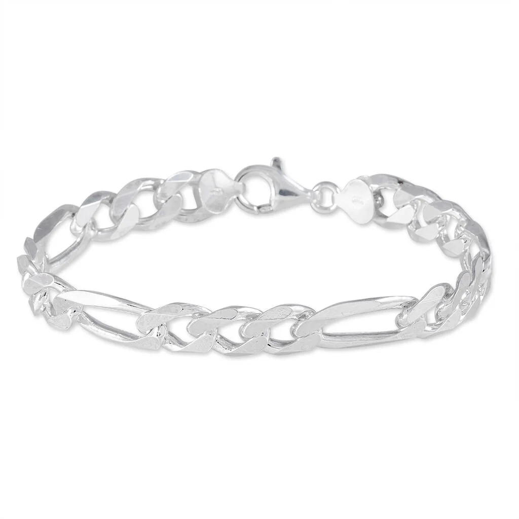 Bracelet Argent Blanc 925/1000 Maille Alternee 1/3 Epaisseur 9.5mm 22cm