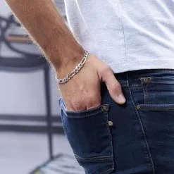 Bracelet Argent Blanc 925/1000 Maille Alternee 1/3 Epaisseur 6.6mm 22cm