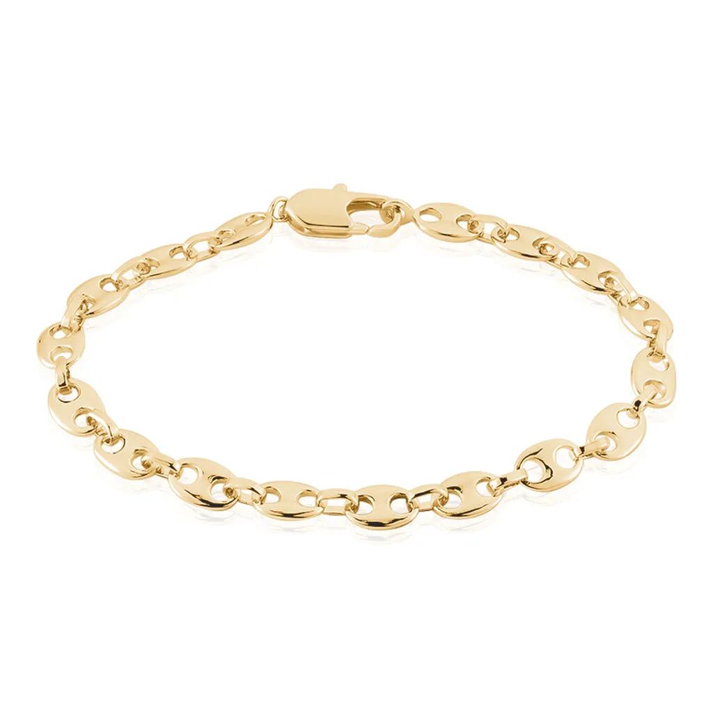 Bracelet Plaqué Or Jaune Maille Grain De Cafe 6mm 19cm