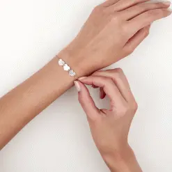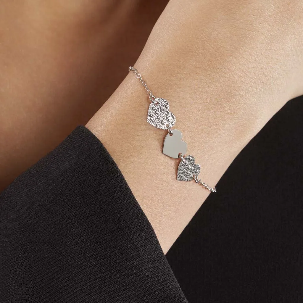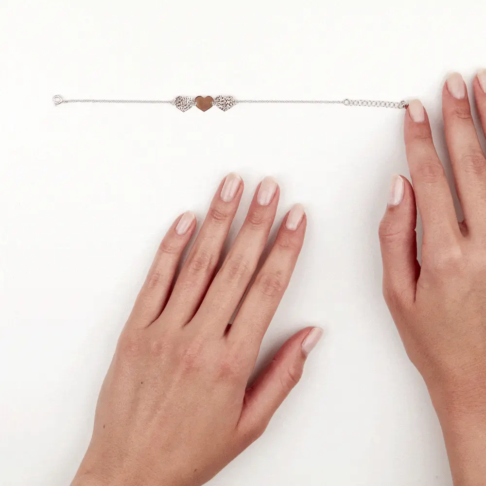 Bracelet Argent Blanc 925/1000 Coeurs Finition Lisse Et Diamante Maille Forcat 19cm