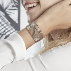 Bracelet Manchette Acier Blanc Ouvert Ajoure Motif Vegetal Diamètre 59*48mm Largeur 30mm