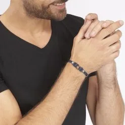 Bracelet Acier Vis Or Cordons Marine 21cm