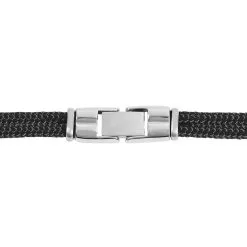 Bracelet Acier Cordons Noirs Et Or 21cm